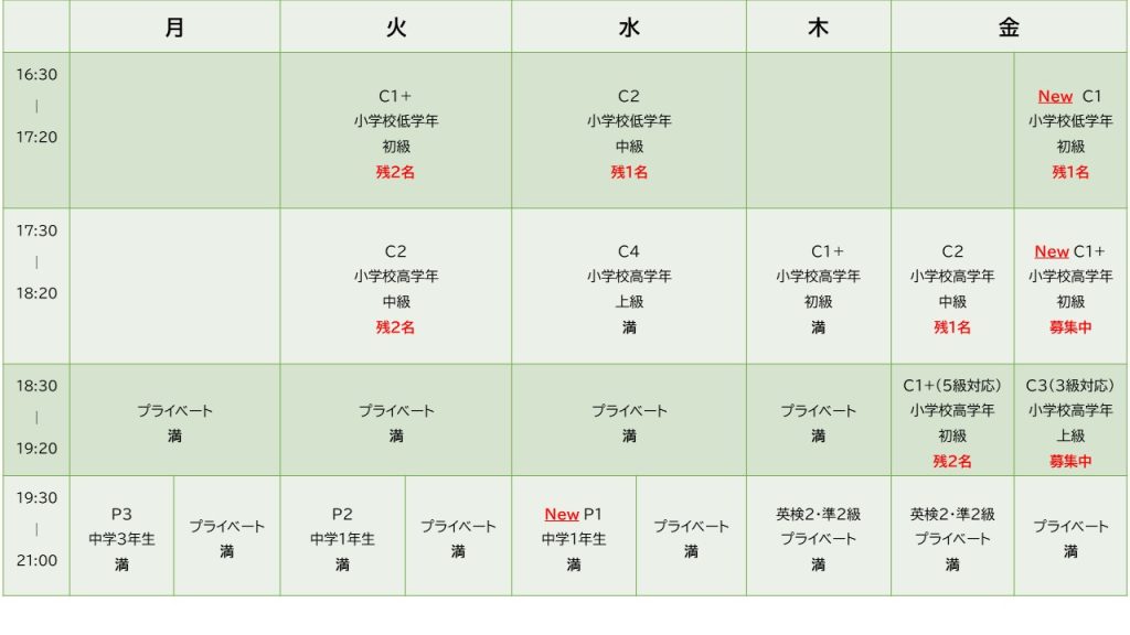 C1+クラス 金曜日17:30~18:20